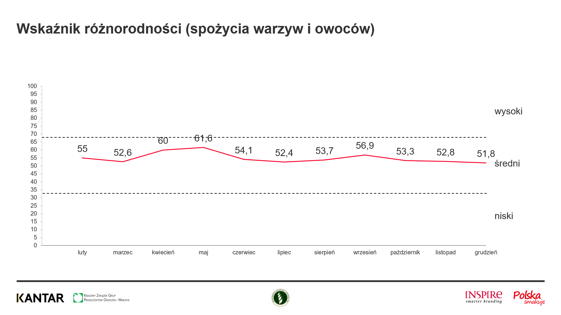Wskaźnik różnorodności (spożycia warzyw i owoców) to syntetyczny wskaźnik obrazujący różnorodność spożycia badanych warzyw i owoców. Przyjmuje on wartości od 0 pkt. (dla osoby, która nie jadła żadnego z wymienionych w badaniu warzyw i owoców) do 100 pkt. (dla osoby, która jadła każde z wymienionych warzyw i owoców).