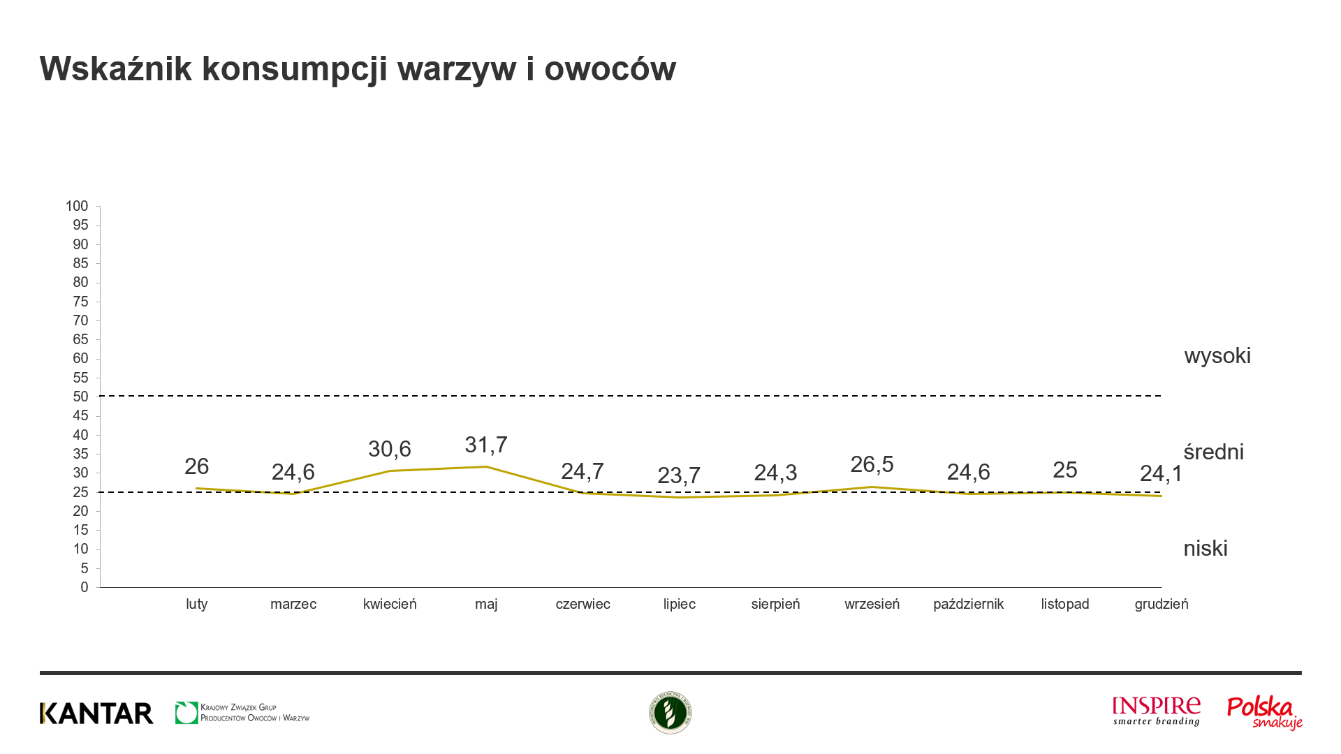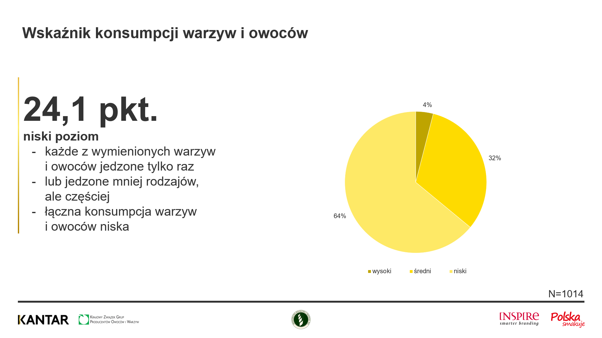 Wskaźnik konsumpcji warzyw i owoców to syntetyczny wskaźnik obrazujący wielkość spożycia badanych warzyw i owoców. Przyjmuje on wartości od 0 pkt. (dla osoby, która nie jadła żadnego z wymienionych w badaniu warzyw i owoców) do 100 pkt. (dla osoby, która każde z wymienionych warzyw i owoców jadła codziennie).