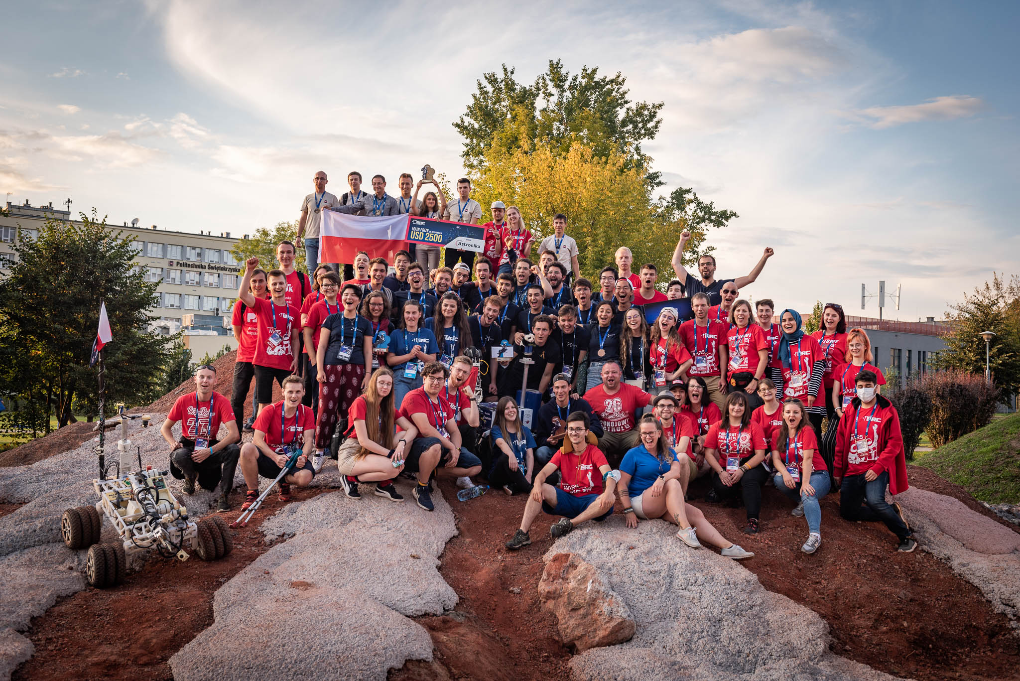38 Teams from all over the world qualified for the ERC finals and took part in the three-day event, competing in two formulas: onsite and remote. This year's competition took place on a beautiful, newly designed Mars yard, the design of which was inspired by an area of Mars' volcanic plain called ‘Elysium Planitia’. The tasks prepared by the jury reflected the latest scientific discoveries and current research undertaken by rovers on the surface of Mars.