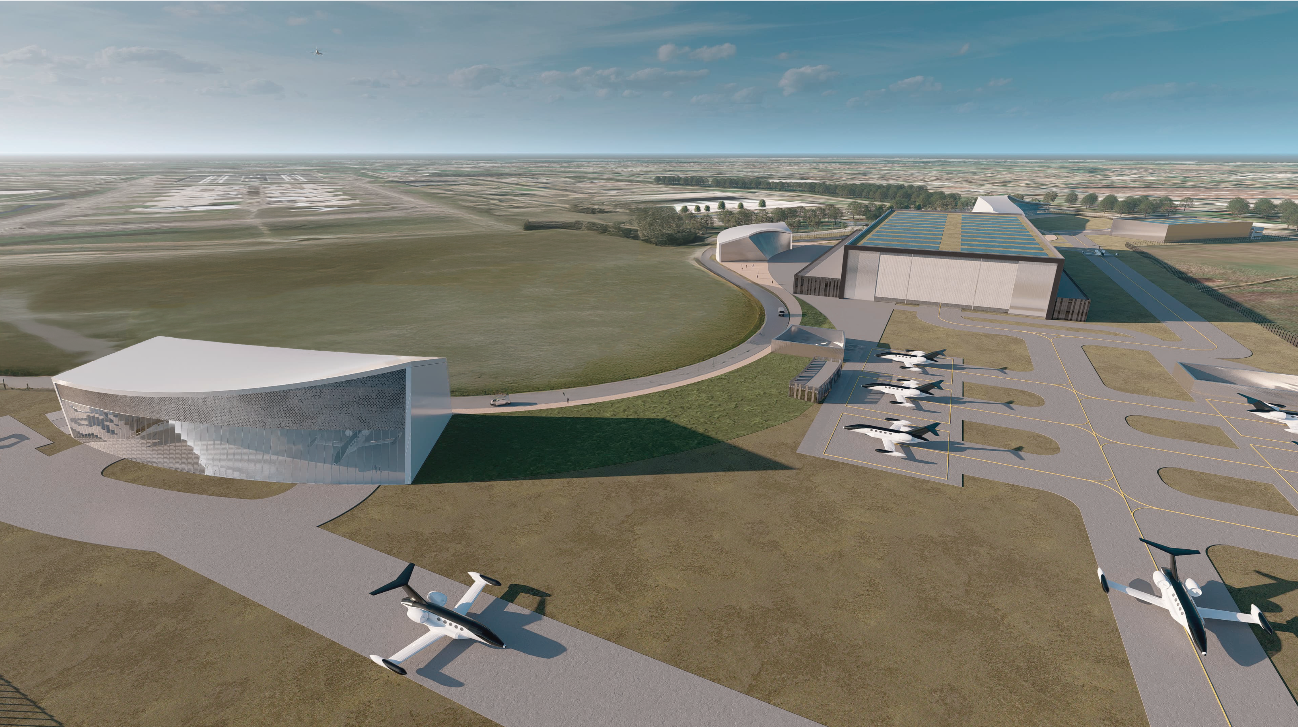 Modern factories are no longer synonymous with smoking chimneys. They are efficient, sustainable, and designed to attract top talent. Hydrogen-electric aviation opens a new chapter, and Beyond Aero’s future site will be one of its showcases.
